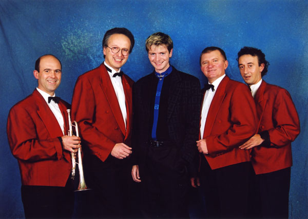 vier, fünf oder sechs Musikern mit Sänger oder Sängerin.